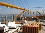 Il veliero ci stava proprio aspettando, maestoso e silenzioso, in mezzo alle acque tranquille del Golfo, affiancato da una “collega” moderna che gli faceva compagnia e che faceva risaltare maggiormente la sua bellezza, la sua signorilità e la sua singolarità ... impossibile non fermarsi un attimo, dopo un automatico confronto tra le due, per ammirare la maestosità della Signora dei Mari.