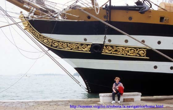 Nave Amerigo Vespucci./noi due: le due ammiraglie! La polena e gli arabeschi in foglia d'oro.