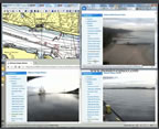 Le immagini che seguono mostrano la "postazione di lavoro" di Gennaro (le "videate" con cui, da casa, seguiva la navigazione) e il Vespucci salpato da poco mentre lo ammiravo passare davanti alle varie webcam lungo il fiume.
