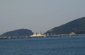 Dal punto designato per il ritrovo, a parte godere della rilassante vista dell’immenso mare azzurro del Golfo, in una giornata di splendido sole, ho potuto assistere all’arrivo, in lontananza, di una nave della nuova Classe Orizzonte. E’ una di quelle navi che avevo solo visto in foto, e che, con tutti quegli spigoli, mi sembra un “origami”.